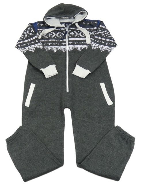 Nové - Šedá vzorovaná tepláková kombinéza s kapucí