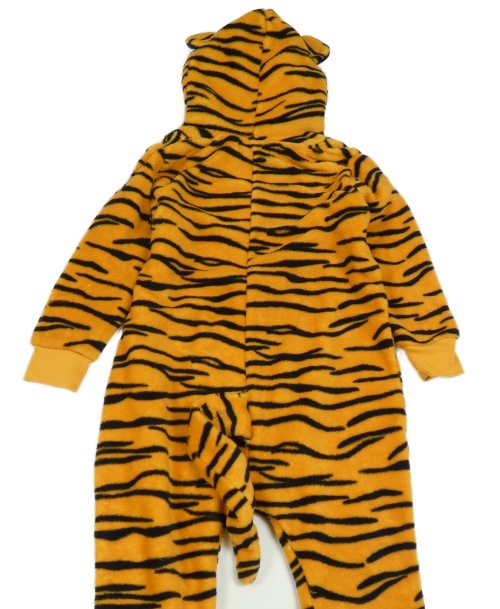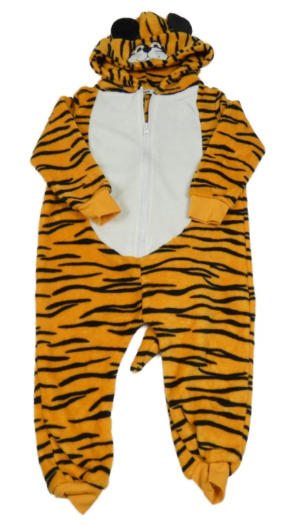 Oranžovo-černo-bílá vzorovaná chlupatá kombinéza s kapucí - tygr