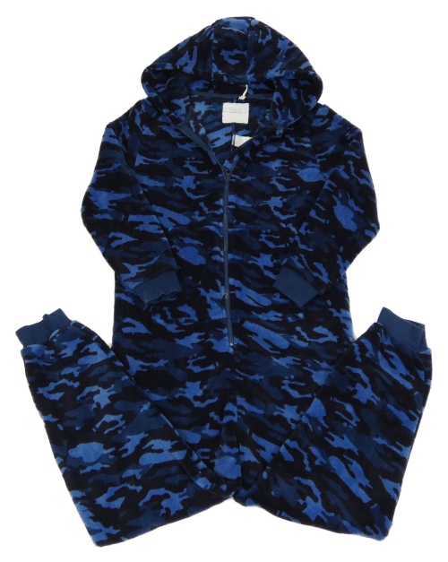 Tmavomodrá army chlupatá kombinéza s kapucí Next