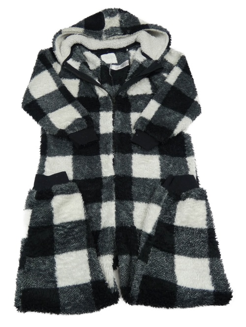 Černo-bílá kostkovaná chlupatá kombinéza s kapucí Next