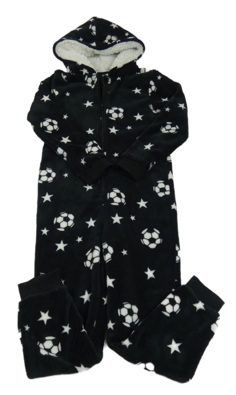 Černá chlupatá kombinéza s míči a kapucí Peacocks