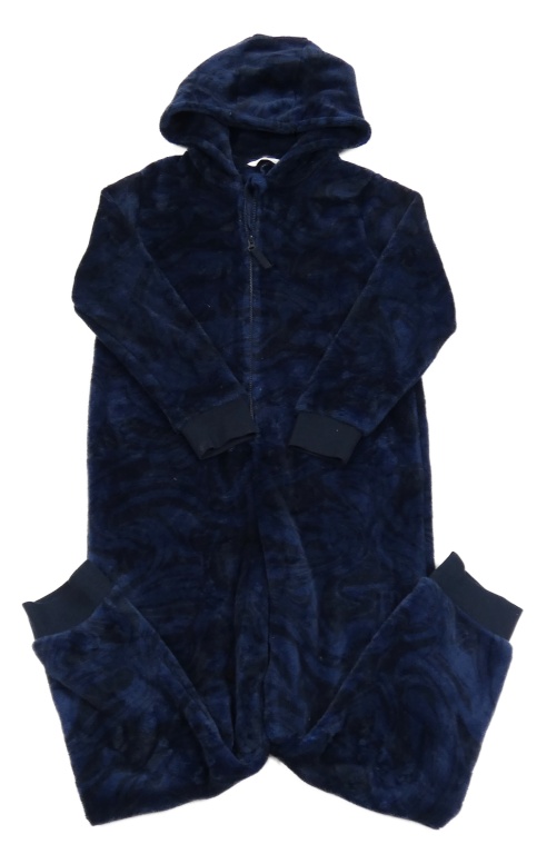 Tmavomodro-černá plyšová kombinéza s kapucí M&S