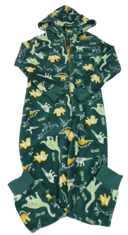 Zelená chlupatá kombinéza s dinosaury a kapucí