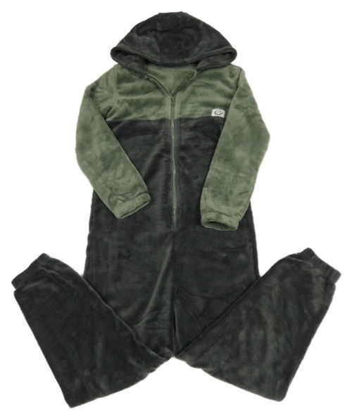 Šedo-khaki chlupatá kombinéza se smajlíkem a kapucí George