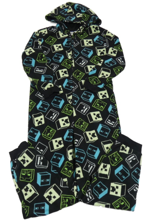 Černo-zeleno-modrá vzorovaná fleecová kombinéza s Minecraft a kapucí George