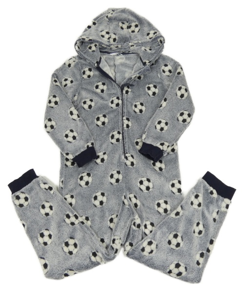 Tmavomodrá vzorovaná chlupatá kombinéza s míči a kapucí M&S