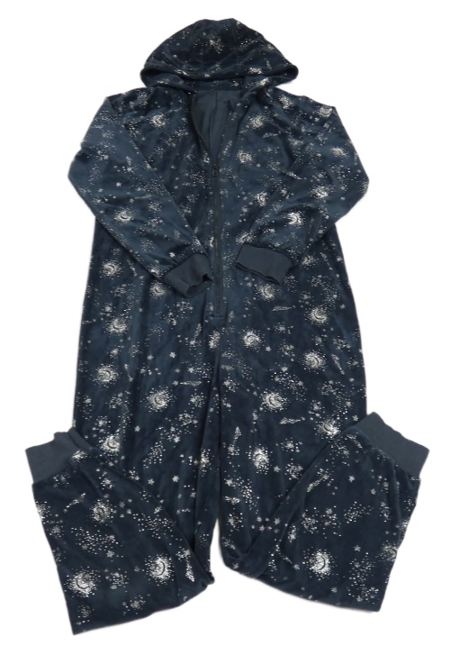 Tmavomodrá plyšová kombinéza s vesmírem a kapucí George