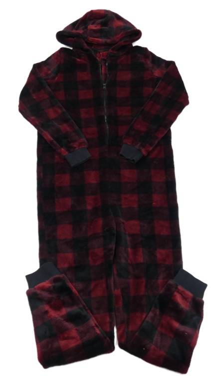 Černo-červená kostkovaná chlupatá kombinéza s kapucí Matalan