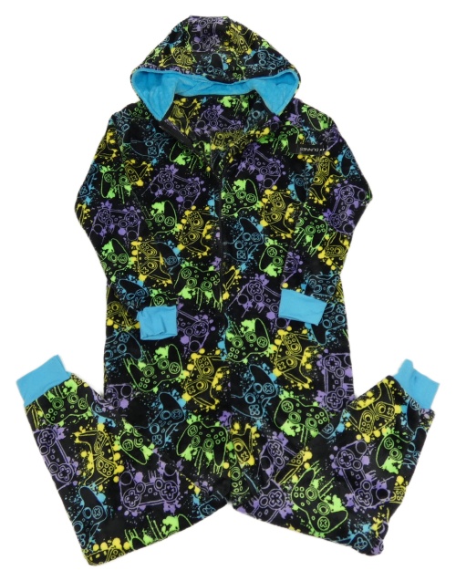 Nové - Černá skvrnitá chlupatá kombinéza s ovladači a kapucí Dunnes