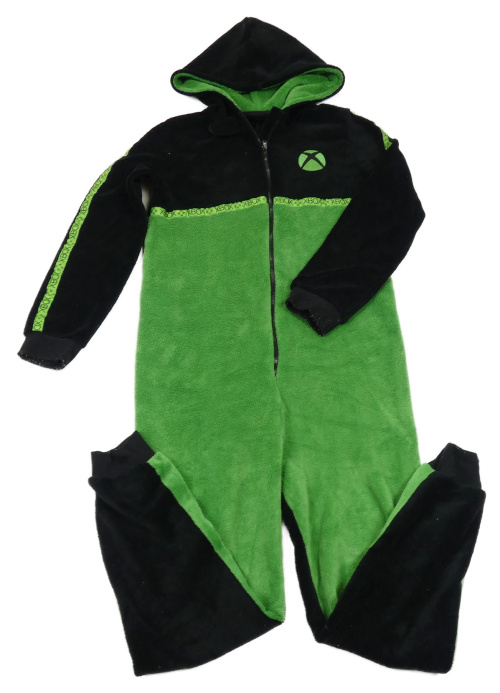Zeleno-černá chlupatá kombinéza s logem X-Box a kapucí Primark