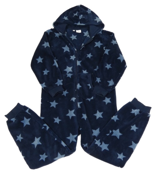 Tmavomodrá chlupatá kombinéza s hvězdičkami a kapucí Bonprix