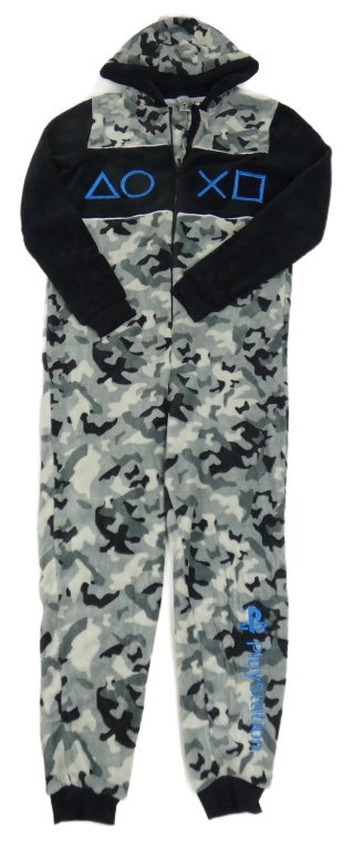 Šedo-černá army chlupatá kombinéza s logem Playstation a kapucí
