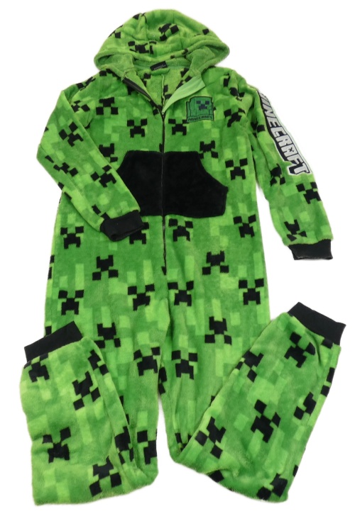 Zeleno-černá kostkovaná chlupatá kombinéza s kapucí - Minecraft Primark