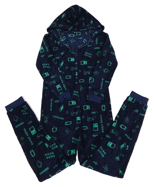 Tmavomodrá chlupatá kombinéza s obrázky a kapucí Zeeman