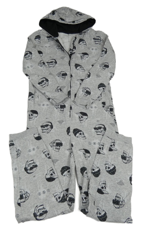 Šedá melírovaná tepláková kombinéza s lebkami a kapucí George