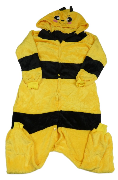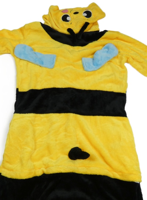 Žluto-černá pruhovaná chlupatá kombinéza s kapucí- včelka vel.176