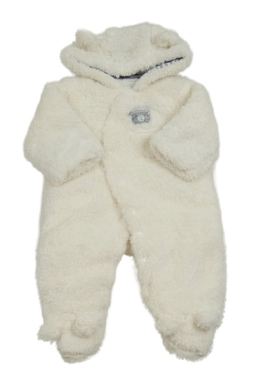 Bílá huňatá podšitá kombinéza s medvědem a kapucí