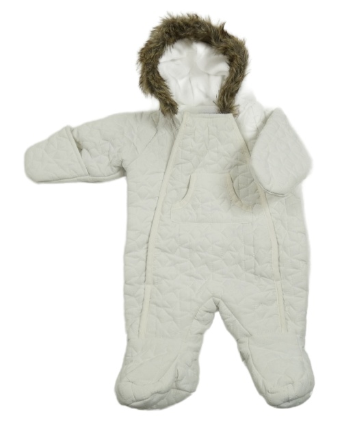 Bílá prošívaná šusťáková zateplená kombinéza s hvězdami a kapucí Early Days