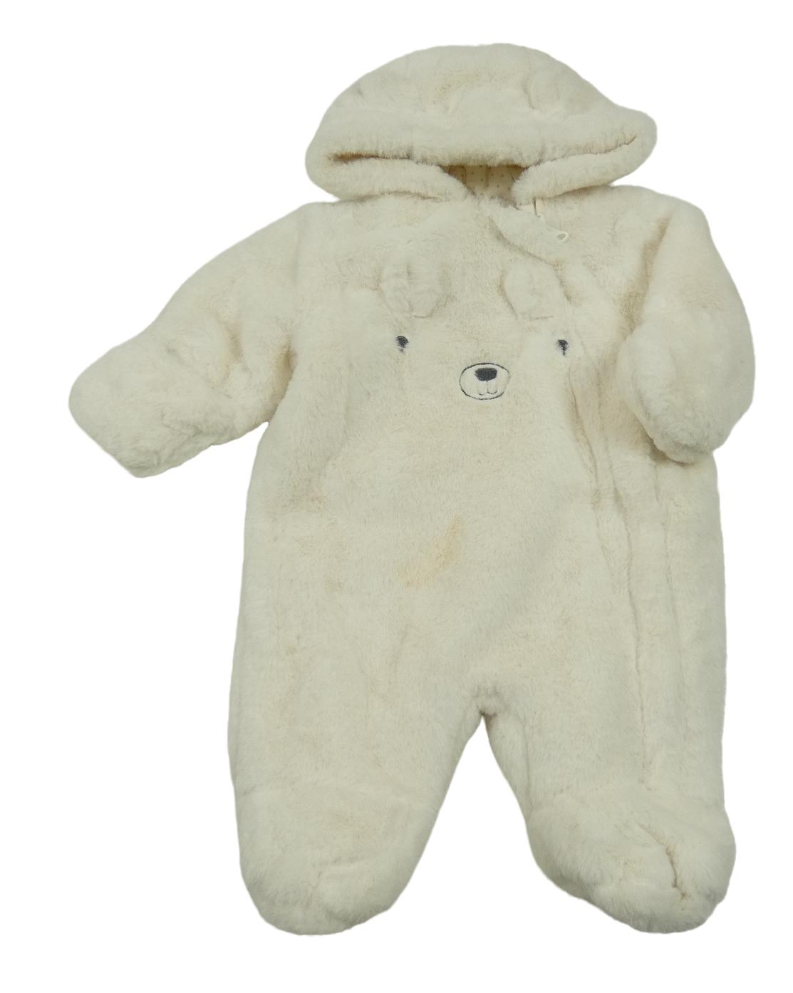 Smetanová kožešinová zateplená kombinéza s medvědem a kapucí Nutmeg