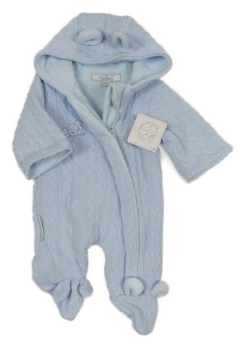 Nové - Světlemodrá pletená podšitá kombinéza se sloníkem a kapucí