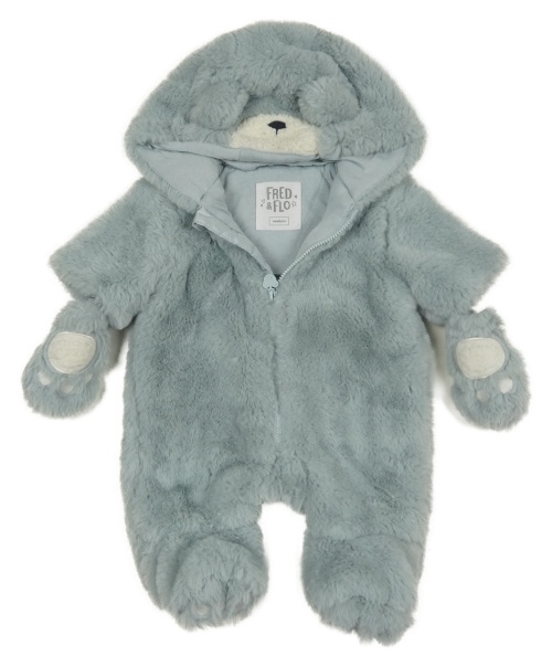 Světlemodrošedá kožešinová podšitá kombinéza s kapucí - medvídek F&F
