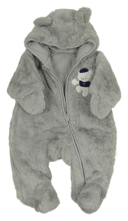 Šedá kožešinová zateplená kombinéza s medvídkem a kapucí Leerjia