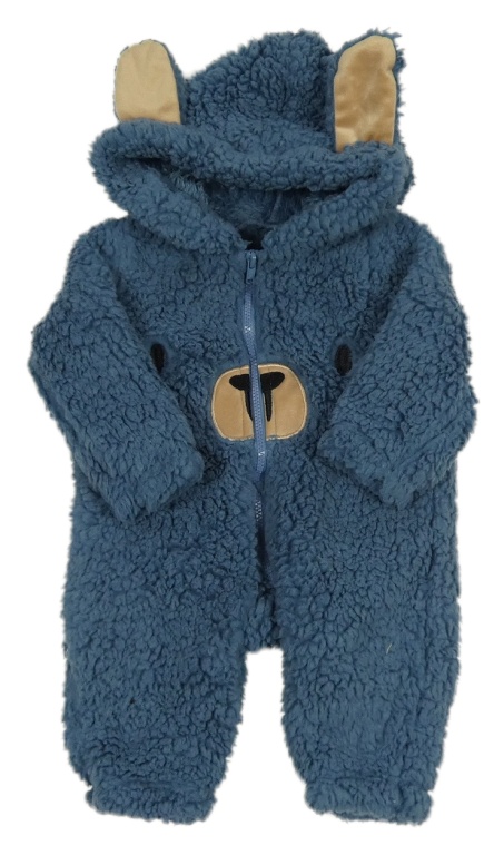 Tmavomodrá huňatá kombinéza s medvědem a kapucí