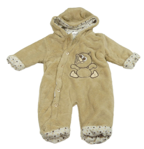 Béžová chlupatá podšitá kombinéza s kačátkem a kapucí Ergee