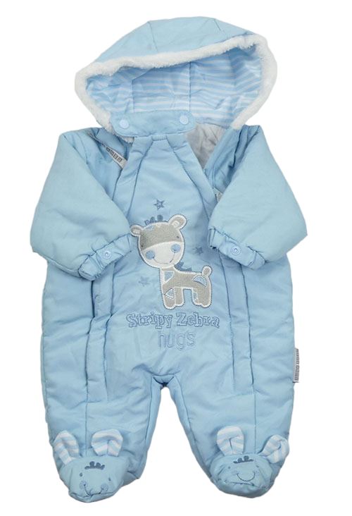 Světlemodrá šusťáková zimní kombinéza se žirafou a kapucí TINY BABY