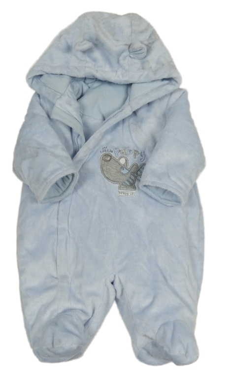 Světlemodrá plyšová zateplená kombinéza s pejskem a kapucí George