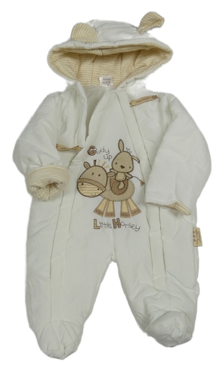Smetanová šusťáková zateplená kombinéza se zvířaty a kapucí
