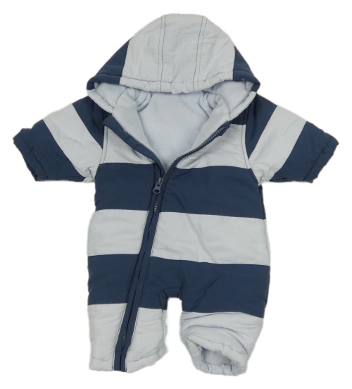 Tmavomodro-světlemodrá pruhovaná šusťáková zimní kombinéza s kapucí Mothercare