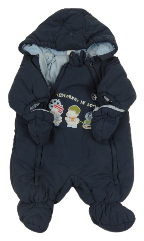 Tmavošedá šusťáková zimní kombinéza s medvídky a kapucí + rukavice C&A