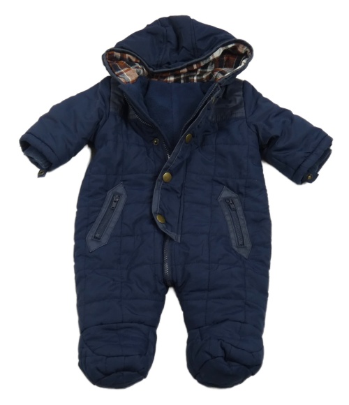 Tmavomodrá prošívaná šusťáková zateplená kombinéza s kapucí Matalan