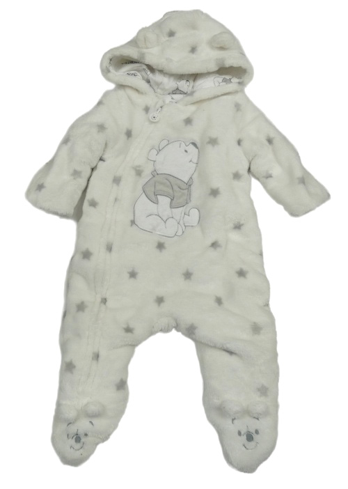 Bílá chlupatá zateplená kombinéza s Púem a kapucí C&A