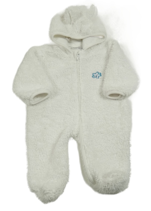 Bílá chlupatá kombinéza s nášivkou a kapucí Ergee