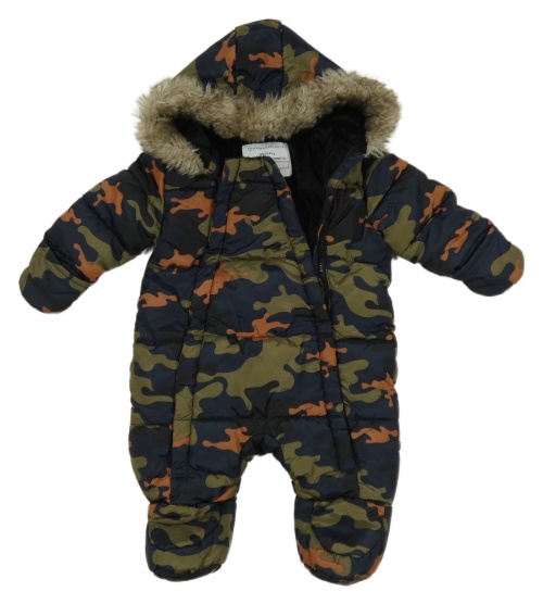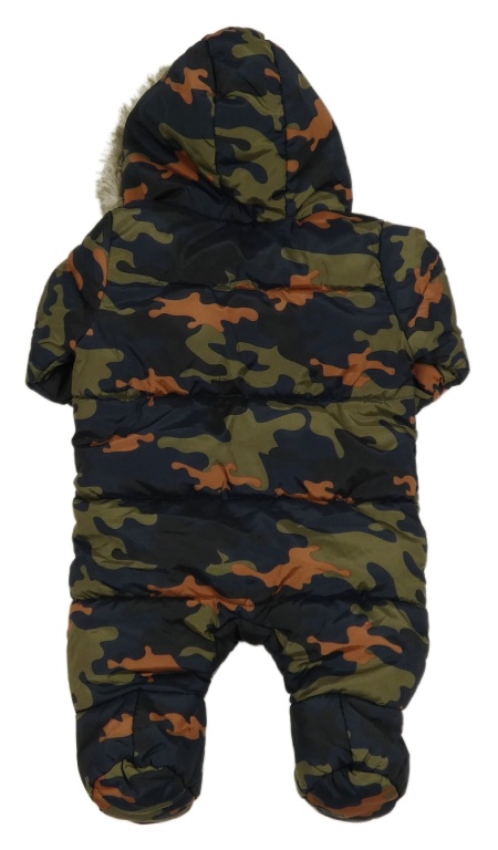 Khaki-černo-hnědá army šusťáková zimní kombinéza s kapucí Primark