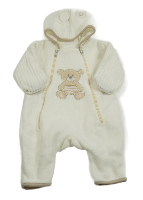 Bílá fleecová kombinéza s medvědem a kapucí