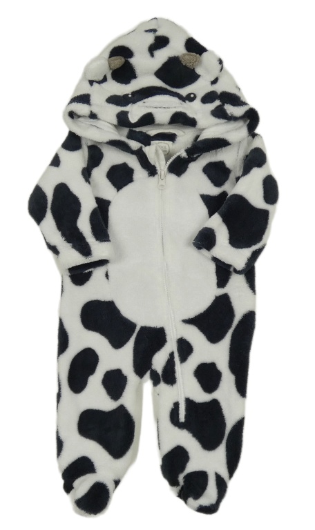 Bílo-černá vzorovaná chlupatá kombinéza s kapucí - kravička