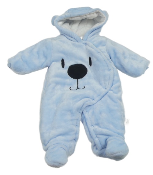 Světlemodrá chlupatá zateplená kombinéza s čumákem a kapucí