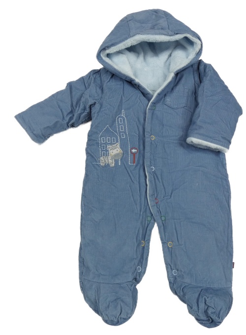 Modrošedá manšestrová zateplená kombinéza se zebrou a kapucí M&S