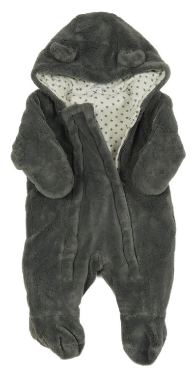 Tmavošedá plyšová zateplená kombinéza s kapucí Bornino
