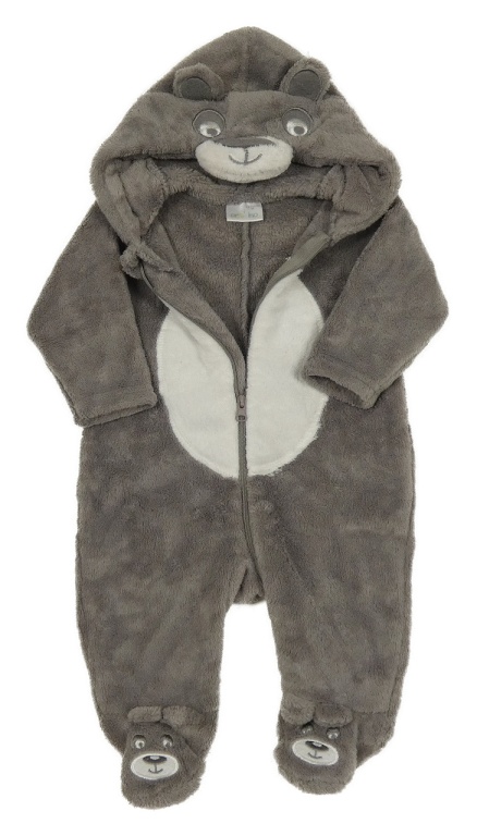 Šedo-bílá chlupatá kombinéza s kapucí - medvěd