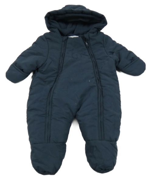 Tmavomodrá šusťáková zimní kombinéza s medvídkem a kapucí