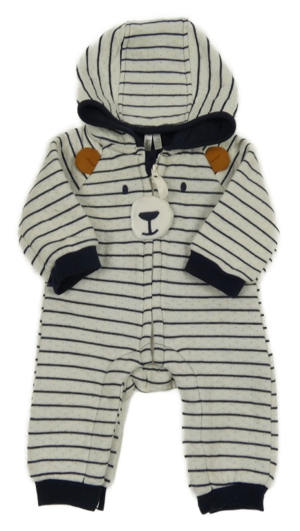 Bílo-tmavomodrá pruhovaná tepláková kombinéza s medvědem a kapucí Orchestra