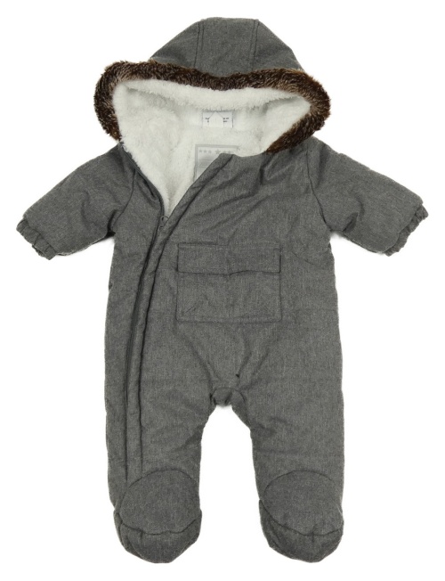 Tmavošedá melírovaná šusťáková zimní kombinéza s kapucí Topomini