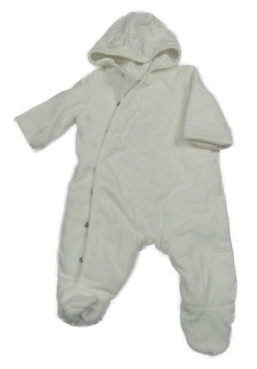 Bílá sametová zateplená kombinéza s liškami a kapucí C&A
