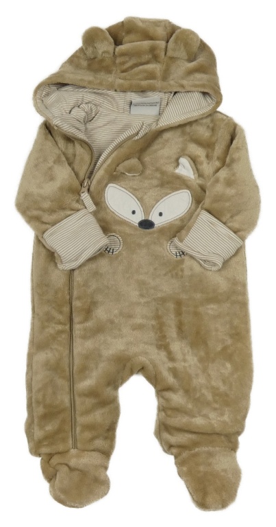 Hnědá chlupatá podšitá kombinéza s medvědem a kapucí Topomini