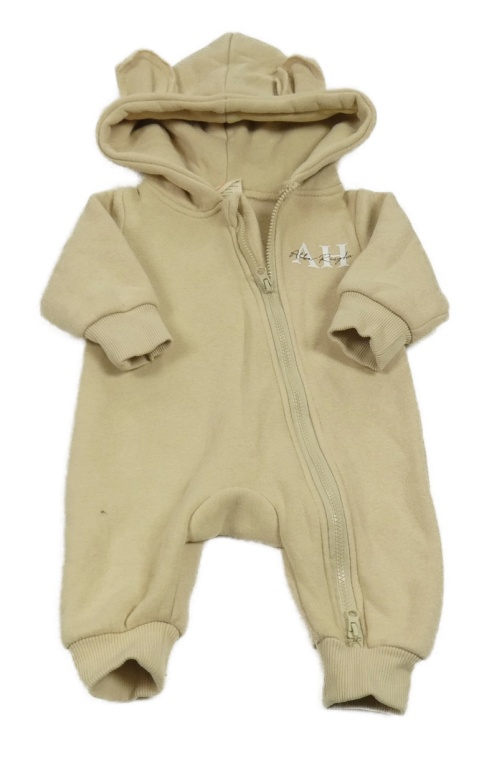 Béžová tepláková kombinéza s nápisem a kapucí