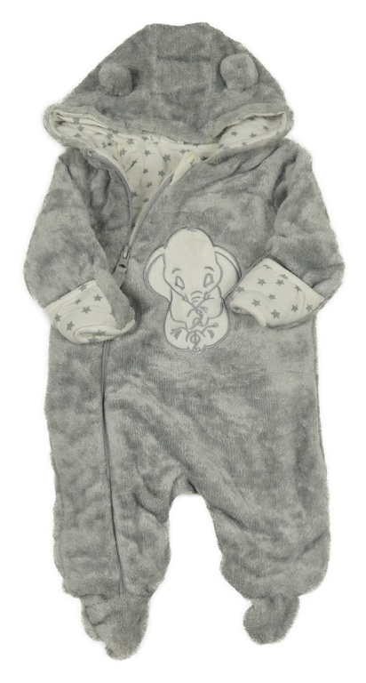 Šedá chlupatá podšitá kombinéza s Dumbem a kapucí Disney